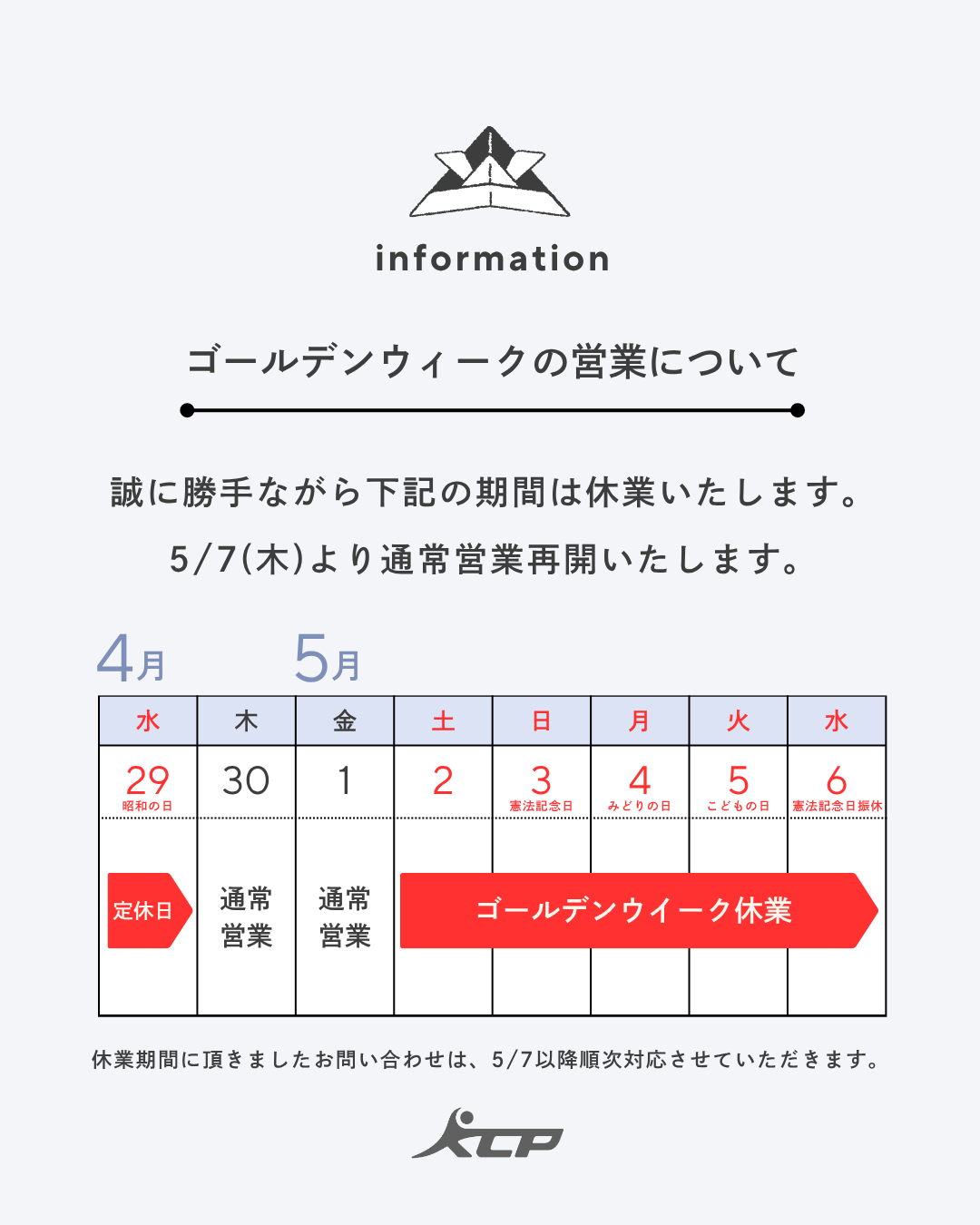 【日曜日・祝祭日は休業日】